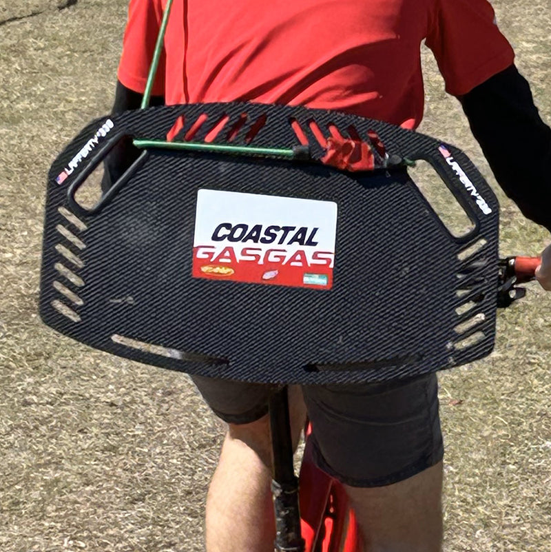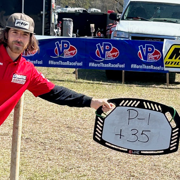 Our E Line carbon fiber Pro Pit Board is durable, professional, cool and mobile. Designed with slots for carrying around the course. Made with the same high quality carbon fiber as our guards for a long lasting pit board that doesn't break easily. The choice of the GNCC Pros! Comes with a white graphic for use with dry erase markers.