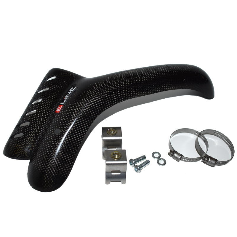 Upgrade your 250 with an E Line Accessories carbon fiber heat shield and ride confidently knowing your pipe is protected from heat and trail hazards.