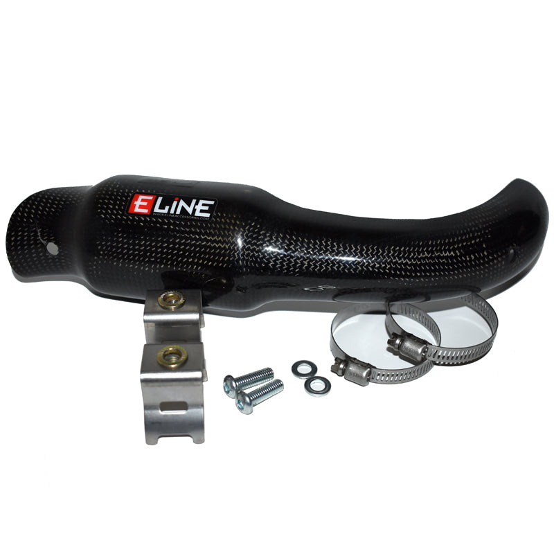 Upgrade your Yamaha YZ250F with an E Line Accessories carbon fiber heat shield and ride confidently knowing your pipe is protected from heat and trail hazards.